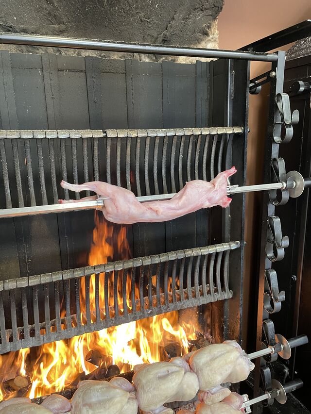 Conejo entero asado a fuego lento